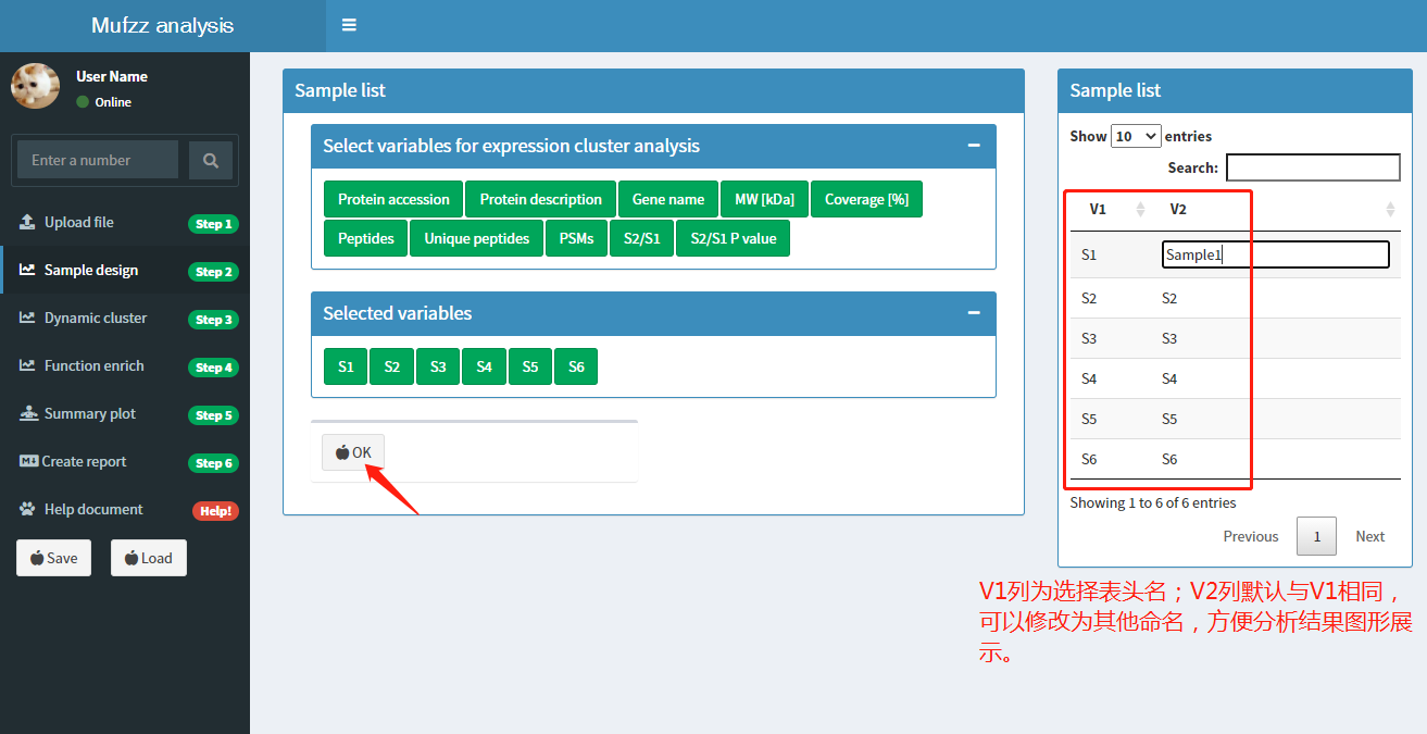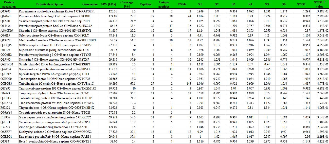 数据示例如下图:(其中S1、S2、S3、S4、S5、S6列为蛋白在样本中的表达量)
