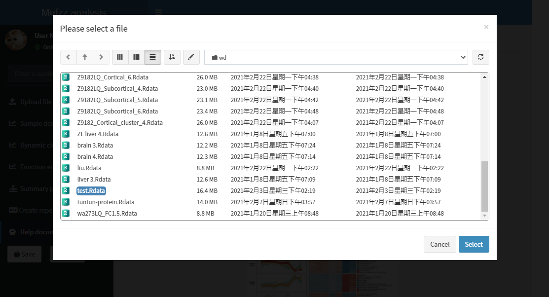 在网页左侧导航页面有两个按钮Save、Load。Save按钮用于保存当前分析结果在服务器中。Load按钮用于加载保存过分析结果。服务器中包含demo示例结果,可以采用load方式直接查看。