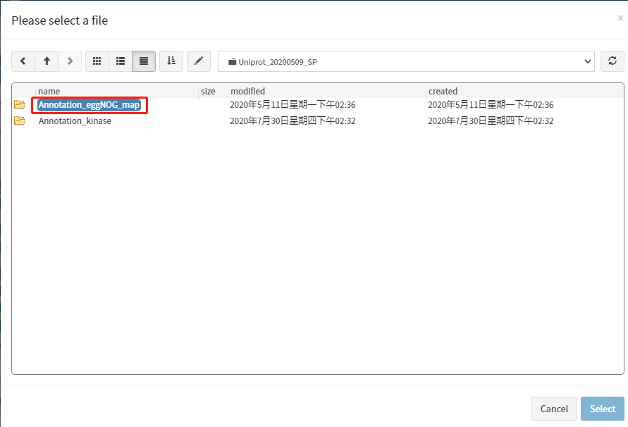 选择物种功能注释数据库: