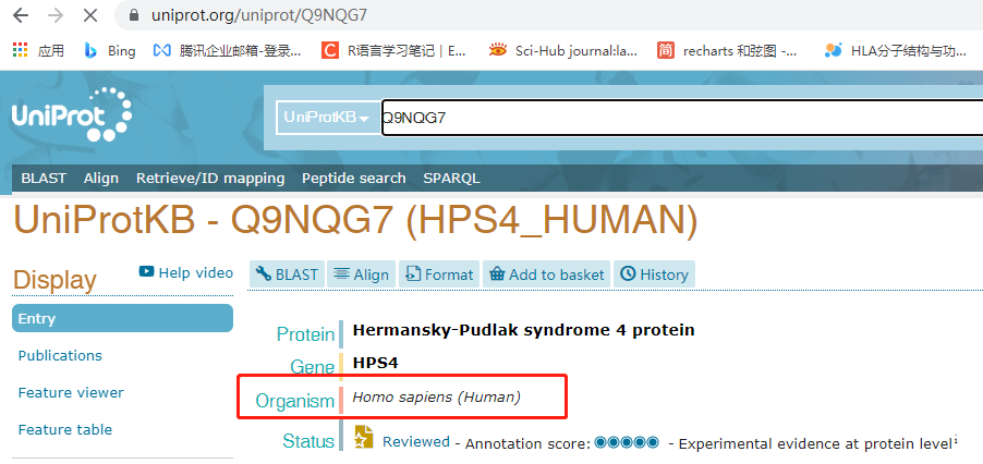 选择数据库前:首先需要确定输入蛋白ID对应来源的物种信息。我们可以登录https://www.uniprot.org/网页,在搜索栏输入蛋白ID来查询蛋白的具体物种来源。